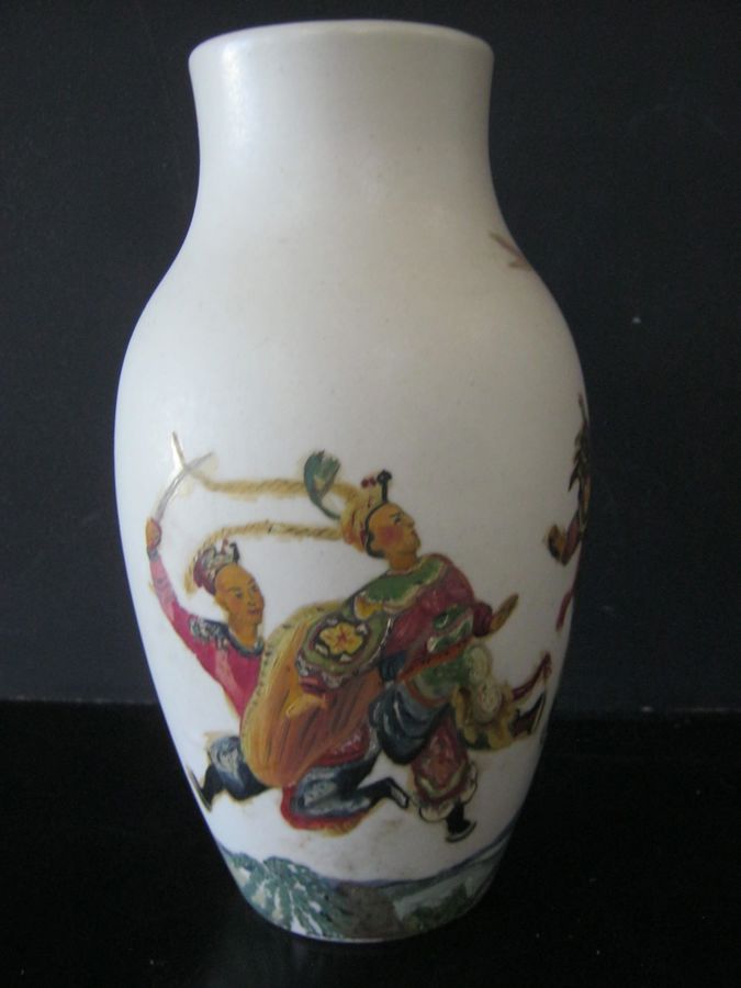 LOVATTS PORCELAIN VASE DEPICTING CHINESE BATTLE SCENES, 25cm Tall