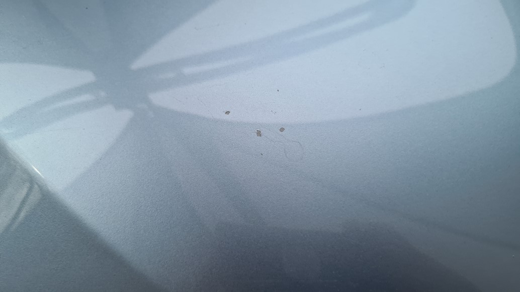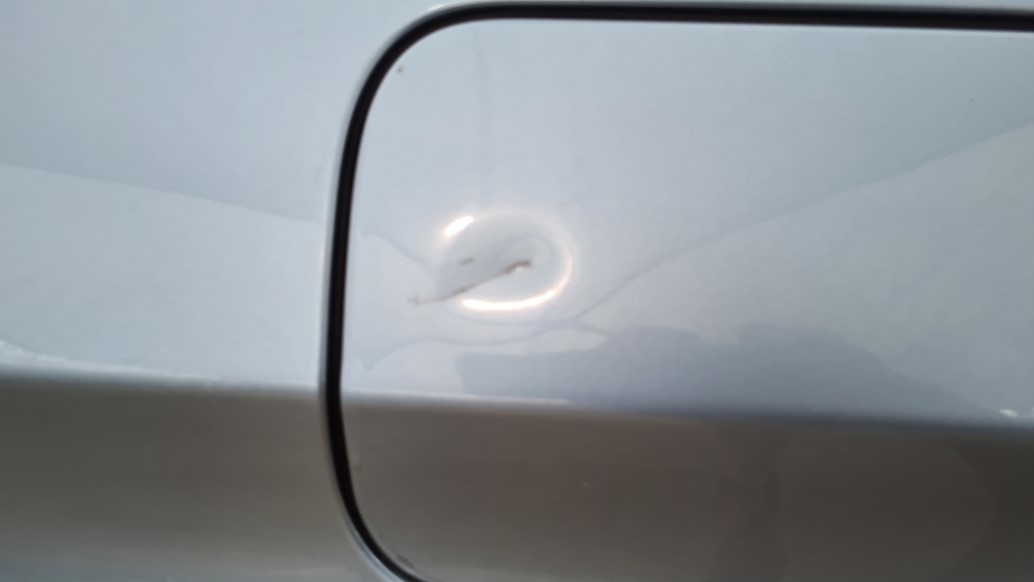 Slight dents, scratches and chip marks. Fuel cap dent. Rear window film scratched.
