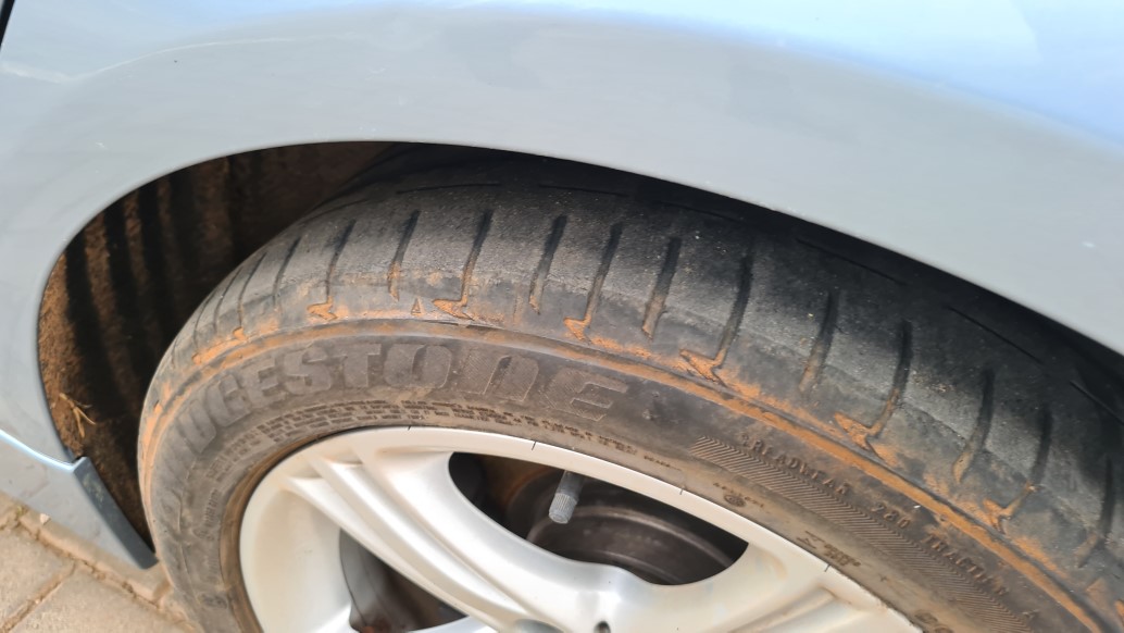 Rear door upholstery scratched. 2 Front Tyres Tread depth above standard.