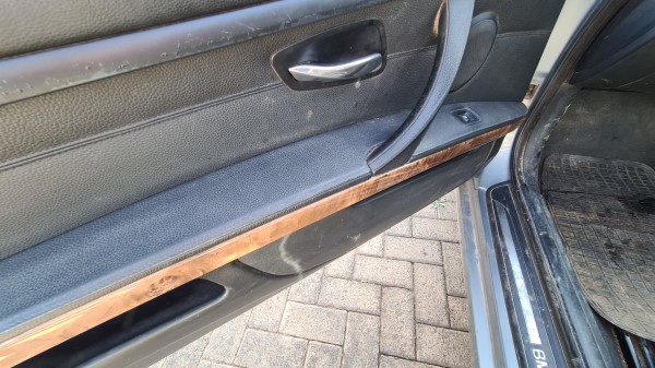 Driver side bottom sill trim loose. A-post plastic replaced. Front seats torn.