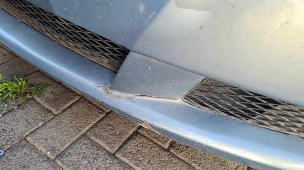 Front bumper and windscreen trim cracked, bumper caps removed.