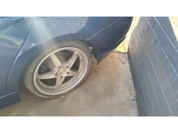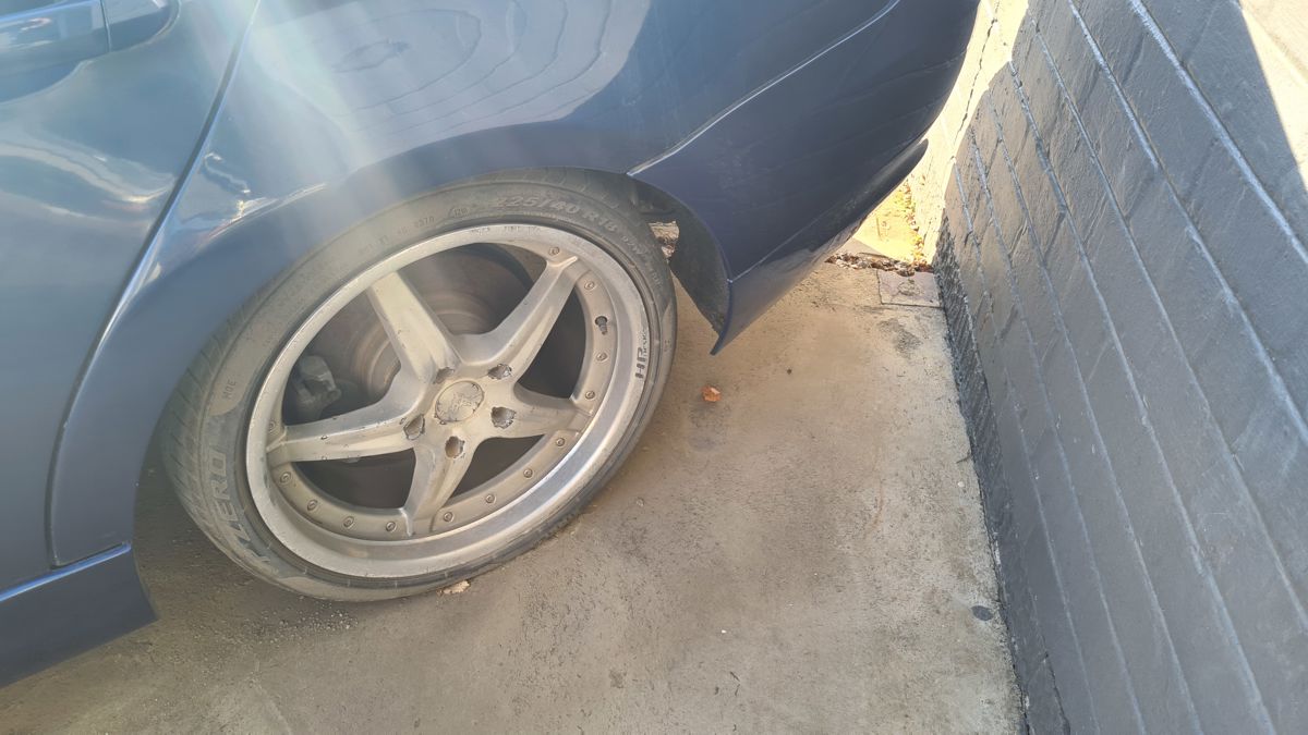 Different type of rims, tyres below standard.