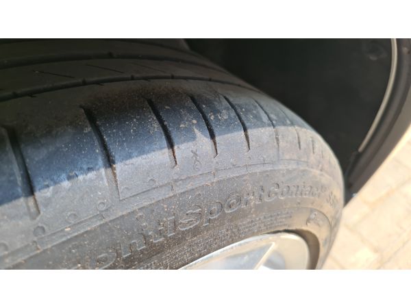 SCRATCHES HEADLIGHTS, DRIVER SIDE REAR BUMPER