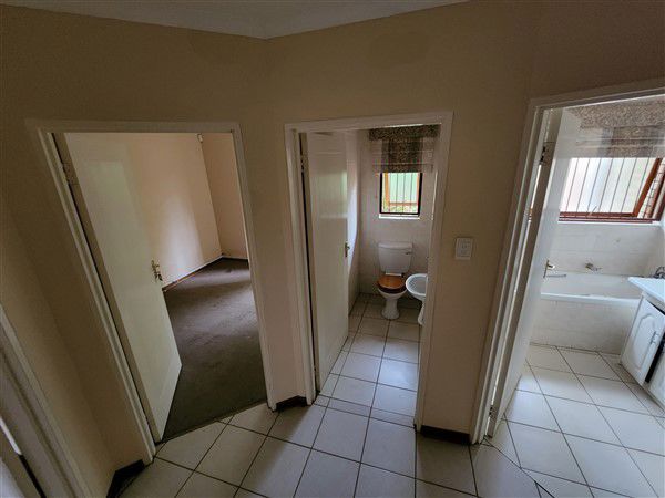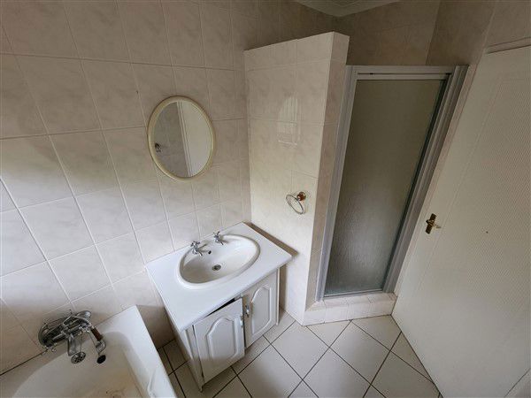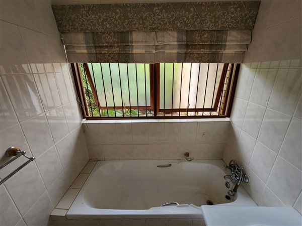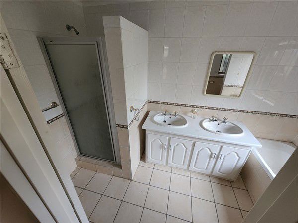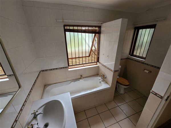 The main bedroom en-suite bathroom with bath, shower and toilet.