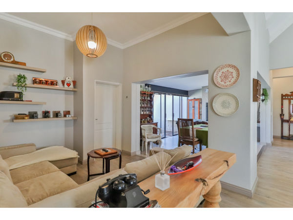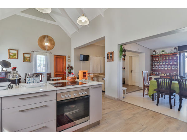 This low maintenance property offers beautiful open plan living areas and double volume ceilings. The kitchen offers ample cupboards space with a separate scullery/laundry room. There are 3 Bedrooms and 2 bathrooms, the full bathroom is en-suite. Adjacent to the kitchen is an enclosed braai room. The double garage has built-in cupboards. Inverter included