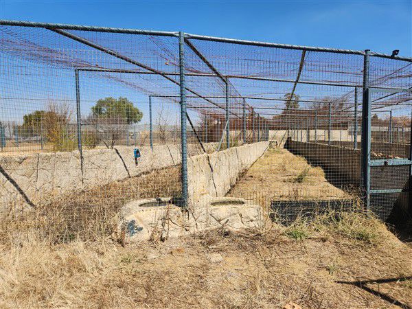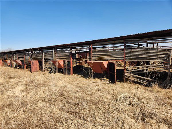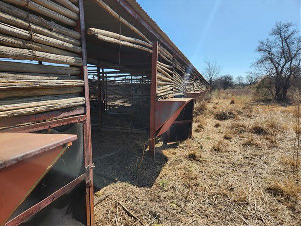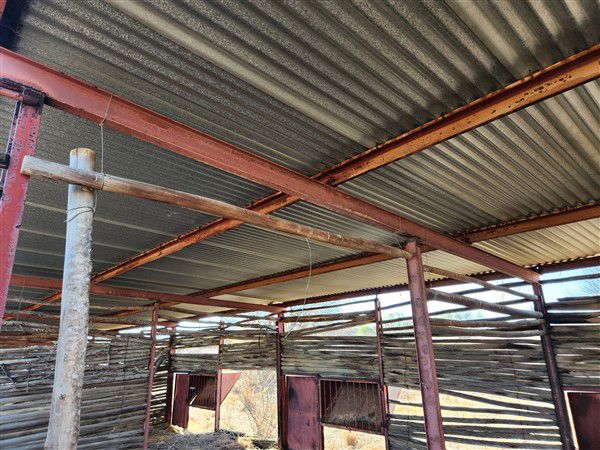 Game pens – Steel construction under roof 56 pens. Can be utilized for other Domestic farm animals. Needs attention.