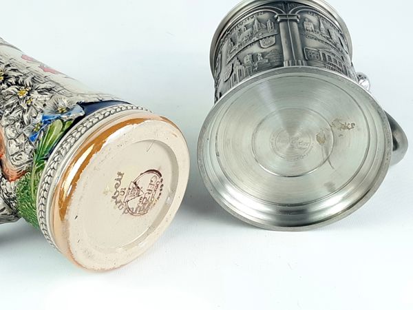 2X VINTAGE GERMAN BEER STEIN & PEWTER MUG