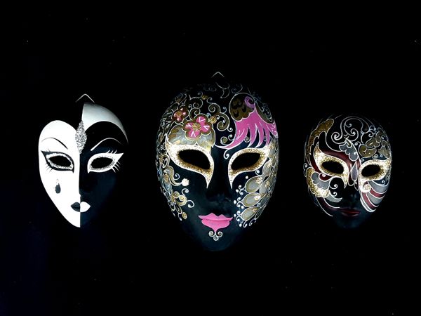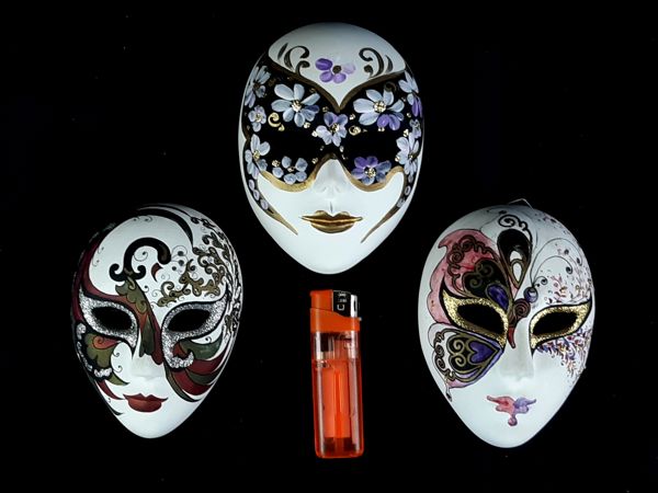 VENETIAN MASKS, PORCELAIN, LARGEST 13CM