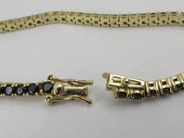 GOLD PLATED SILVER & BLACK STONE TENNIS BRACELET