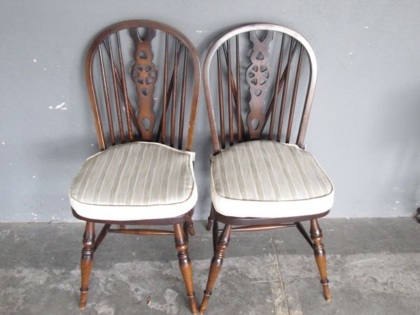 2 X EBONISED HARD WOOD OAK CHAIRS & 1930'S EXT DESK
