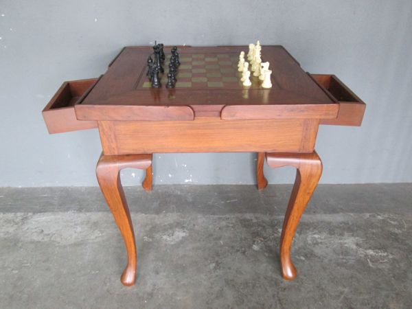 BRASS INLAID GAMES TABLE 78X74X73CM