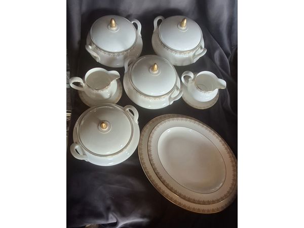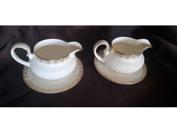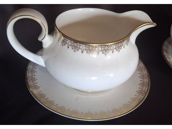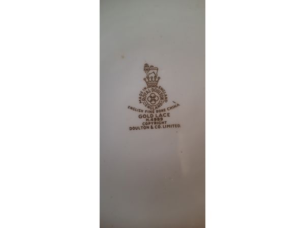 Royal Doulton English Fine Bone China Set, Gold Lace pattern.