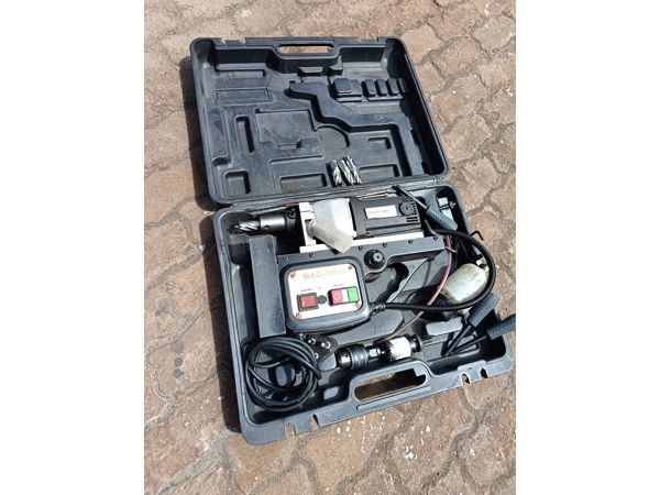 MAC AFRIC Magnetic Drill model: EDRILM001. Magnet Pressed Drill for Sale Ideal for Steelwork Applications We're selling a magnet pressed drill, perfect for steel fabrication and engineering projects. This drill makes quick work of drilling holes in steel, saving you time and effort. Key Features: - Powerful magnetic base for secure drilling - Efficient drilling process with minimal setup time - Ideal for drilling holes in steel plates, pipes, and other metalwork Well-Maintained Condition The drill has been well-maintained and is in good working condition. Regular oiling has ensured smooth operation and extended the lifespan of the drill. Why Buy? - Increase productivity with faster drilling times - Improve accuracy with the magnetic base - Perfect for steel fabrication, engineering, and construction projects