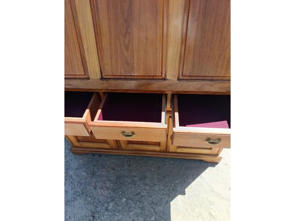 Wood Cabinet - Exquisite Craftsmanship & Timeless Elegance!A stunning antique wood cabinet, showcasing exceptional craftsmanship and sophistication. Description: - Material: Solid wood - Size: 1260wide 700mm deap 1430 high - Features: Intricately carved doors, drawers, and trim; ornate hardware This magnificent cabinet boasts a rich, warm patina and exceptional attention to detail. The intricate carvings and ornate hardware evoke a sense of luxury and refinement, making it a perfect addition to any discerning collector's home or office. Don't miss this rare opportunity to own a piece of history!