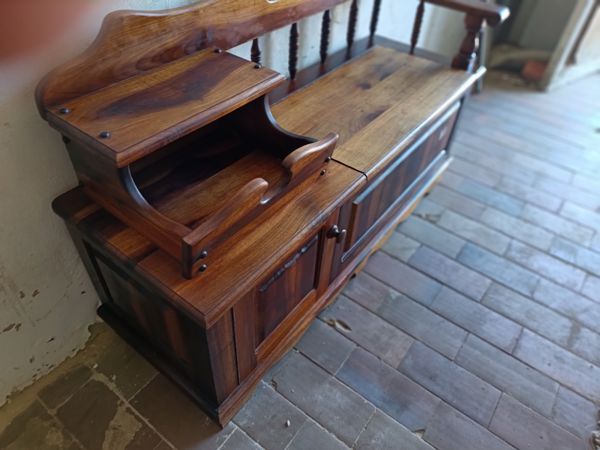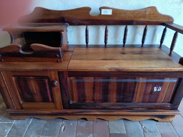 Vintage Telephone Bench - A Rare & Charming Piece of History! Lot [insert number]: A unique and fascinating vintage telephone bench, perfect for collectors and enthusiasts of antique furniture. - Size: [insert size, 1220x420x740mm - Condition: Good, with minor wear and patina consistent with age Features: - Original telephone compartment with metal door - Lift-top seat with storage compartment - Classic, ornate details and carvings A rare opportunity to own a piece of history! Bid now and take home this charming piece of vintage furniture!"