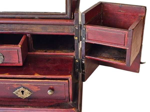 Rare Antique Wooden Fold open Vanity Travel Dressing Box with Mirror