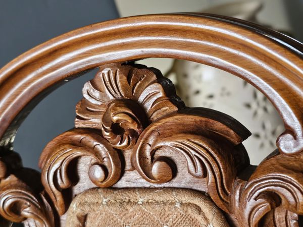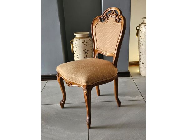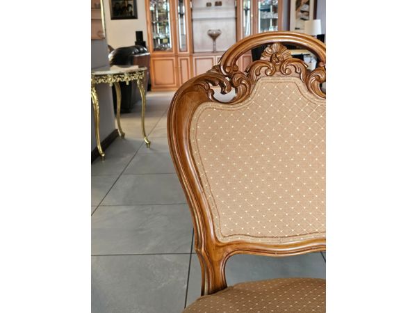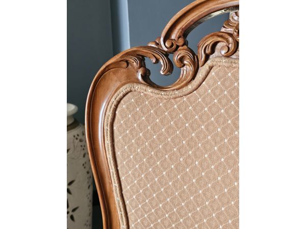 Chairs: Upholstered seats with detailed woodwork
