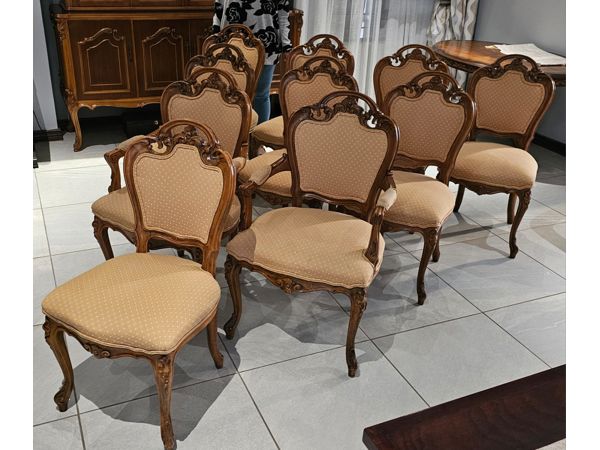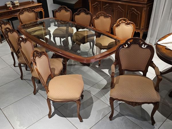 Set Includes: 1 table With Glass inlay top, and 10 chairs