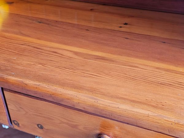Vintage Oregon Pine hutch cabinet with Floral Leaded glass panel doors and two drawers.