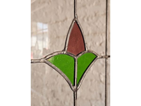 Material: Oregon Pine with floral motif leaded glass panel doors