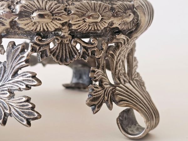 Design: Ornate silver-plating with felaborate floral ad foliate designs