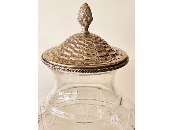 Exquisite pair of large Crystal and silver-plated apothecary Jars.