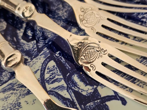HANDLES ARE ORNATED IN A GARDOON TYPE PATTERN