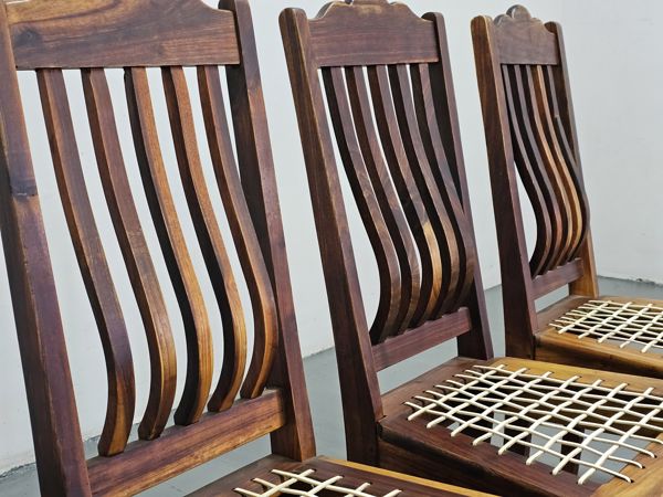 Set of 4 Blackwood Slatted Back Wooden Chairs