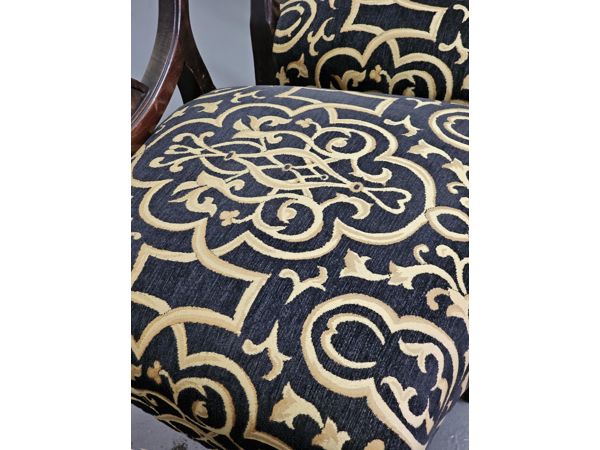 Upholstery: Black and gold patterned fabric
