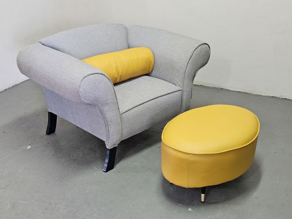 Modern Armchair and Ottoman Set(Newly Upholstered with modern Chic and High Quality Fabrics)