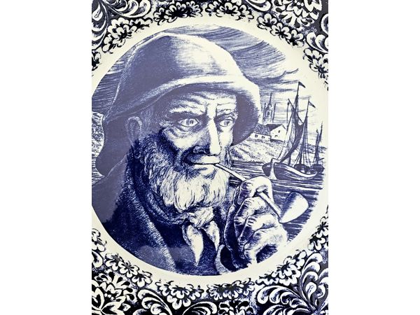 Pair Large Belgium Delft Vintage Nautical-Themed Decorative Plates