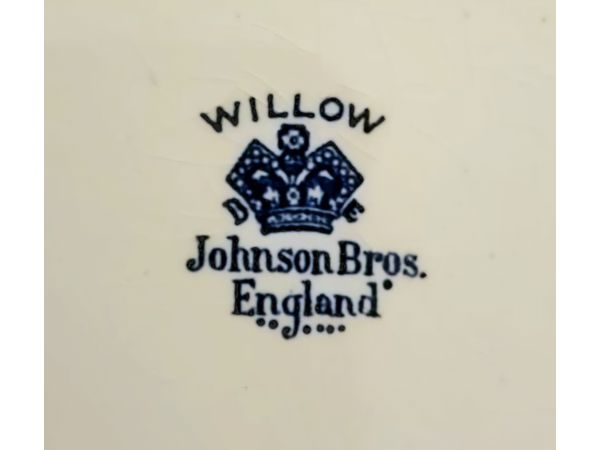 Design: Classic blue willow pattern with intricate landscape scenes