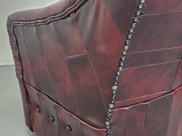 Antique Burgundy Leatherette Armchair & extender Ottoman, Set
