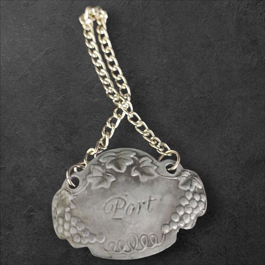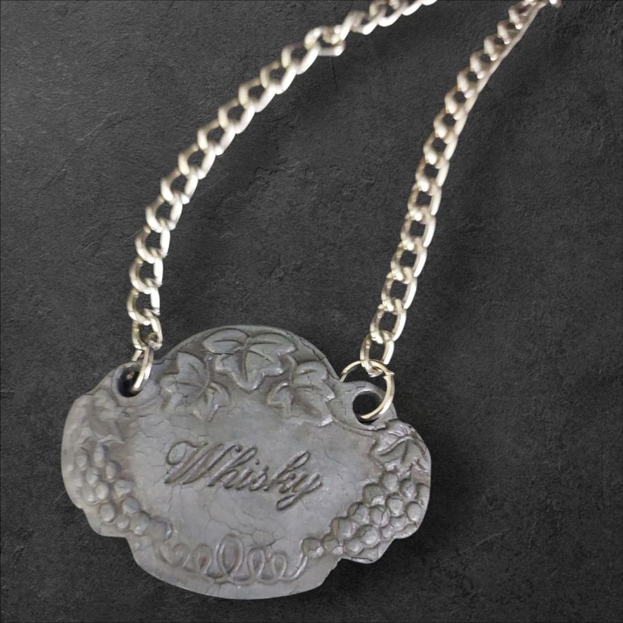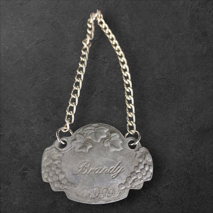 Set of 5 antique decanter labels crafted in a grapevine design.