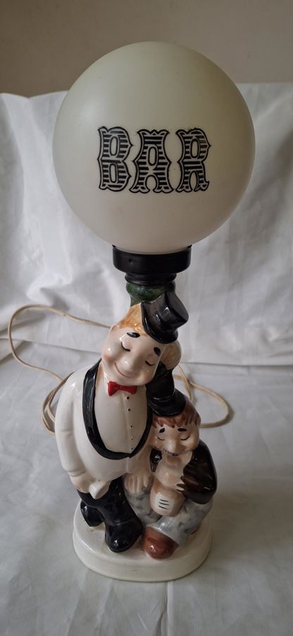 Vintage Elweco ceramic lamp with bar theme.