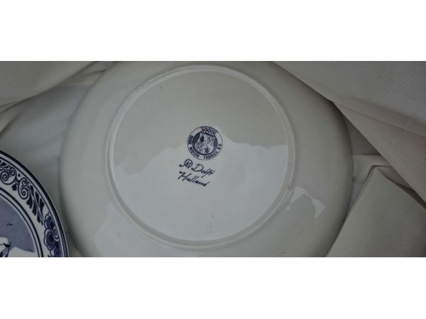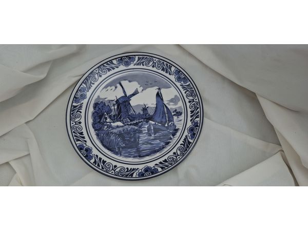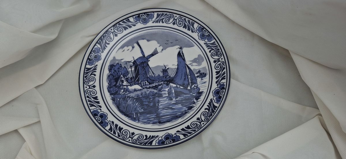 Delft Blue Ceramic Plates featuring floral and windmill designs.
