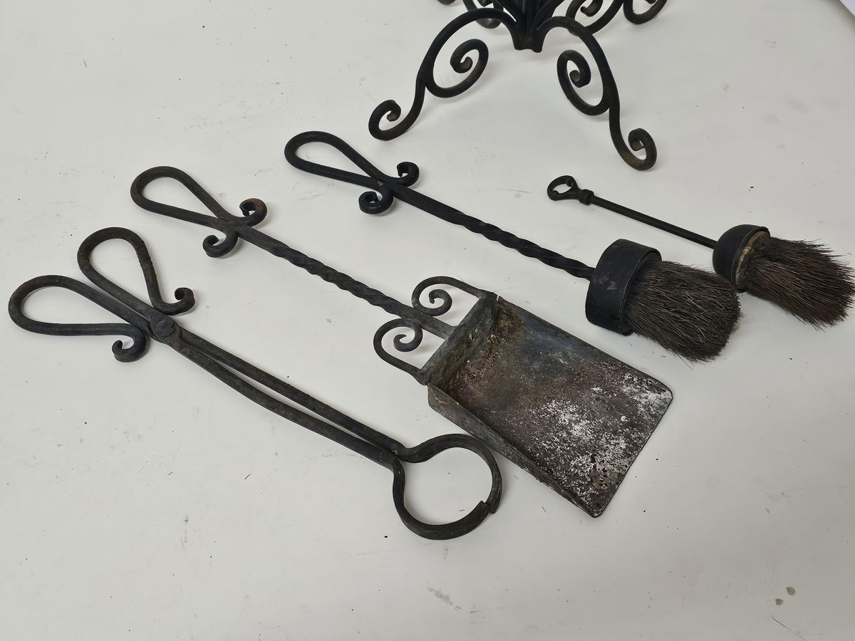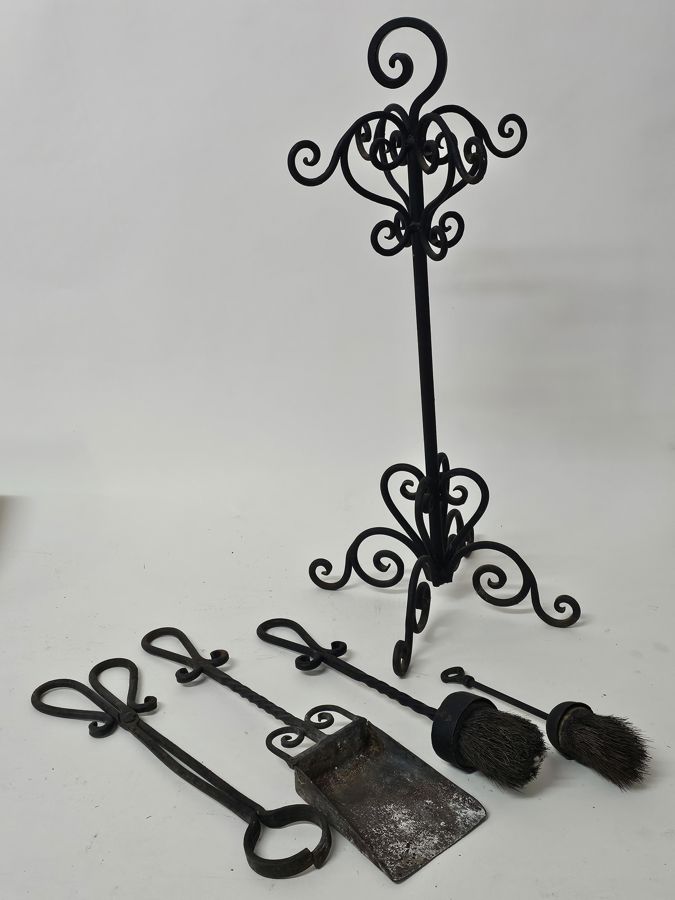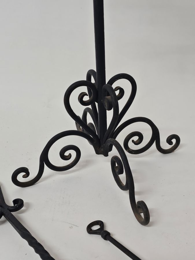 Vintage French Gothic wrought iron Fireplace tool set 70cm(h)
