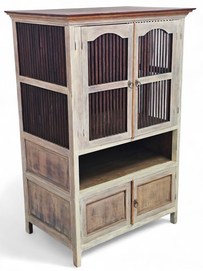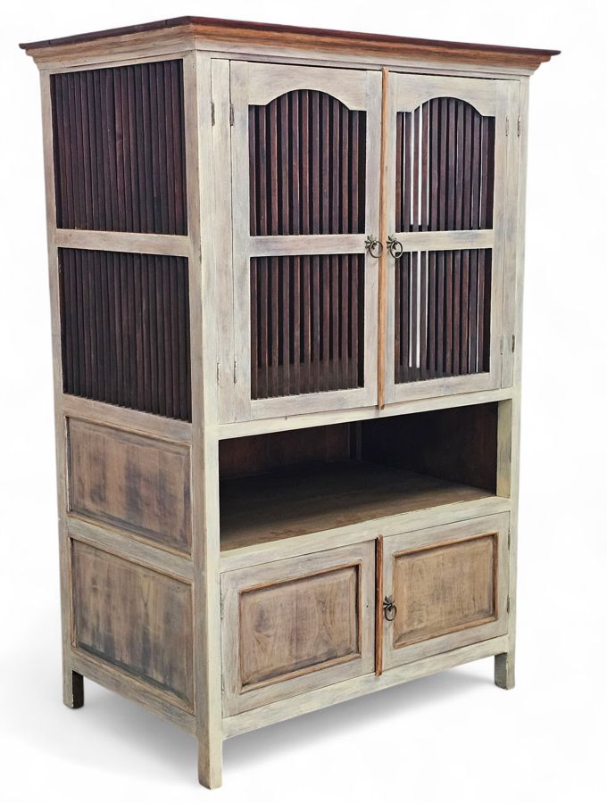 Beautiful Two Tone Rustic Wood Cabinet in the Bali style.