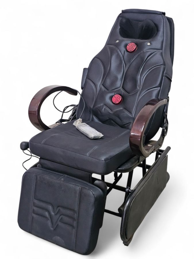 This Medi-Sage YJ-999A therapeutic massage chair is in excellent working condition (100% functional) and offers a variety of massage modes for a relaxing and restorative experience. It features massage functions for the neck, shoulders, back, thighs, and calves, with options for rotation, pulsing, and a heating mode. The chair is designed to provide soothing vibrations and pounding massages with multiple intensity settings to suit different needs.