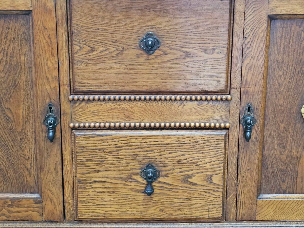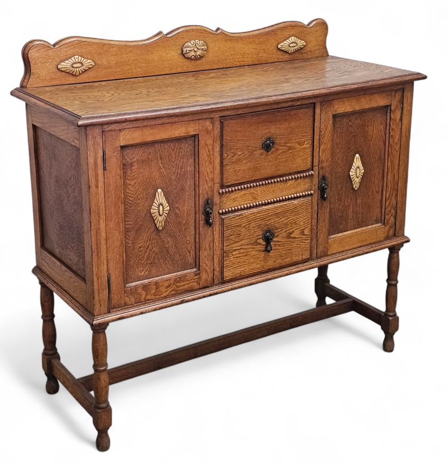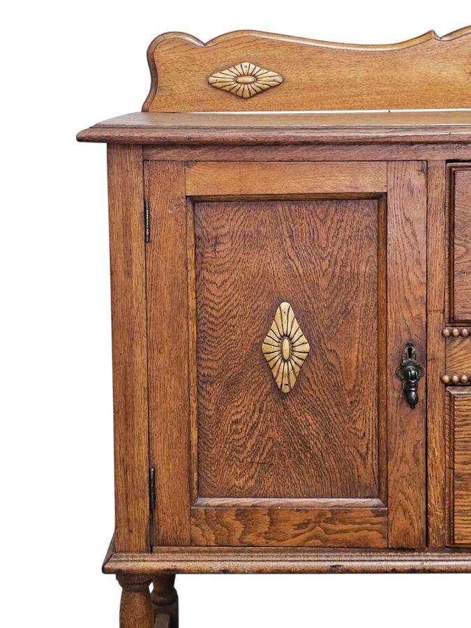 Stunning Vintage Oak sideboard, likely from the Edwardian era or a later revival style such as Jacobean Revival.