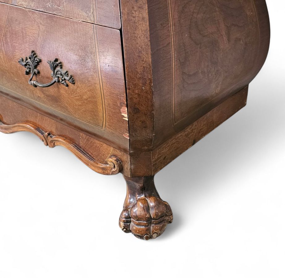 A Dutch or German Baroque-Style Burr Walnut and Marquetry Display Cabinet on Bombe Chest of Drawers, 19th Century