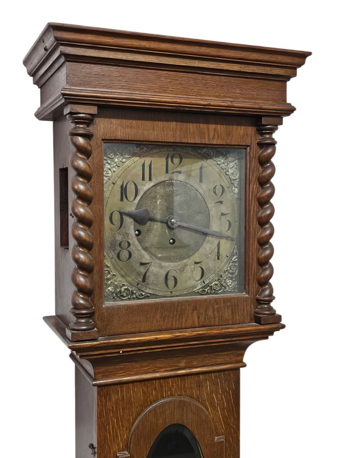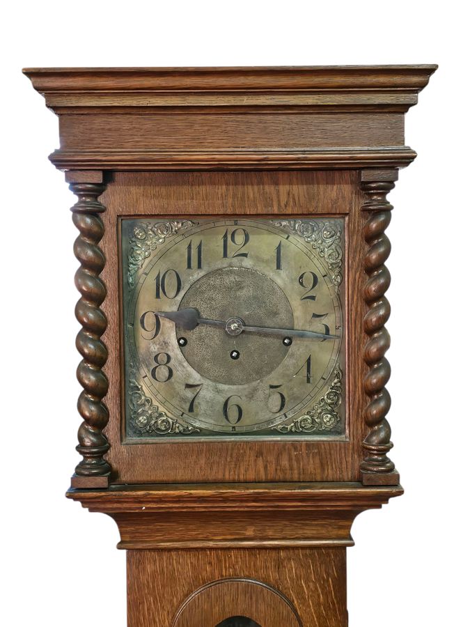 This style of clock is a classic piece of furniture, combining historical craftsmanship with functional design.