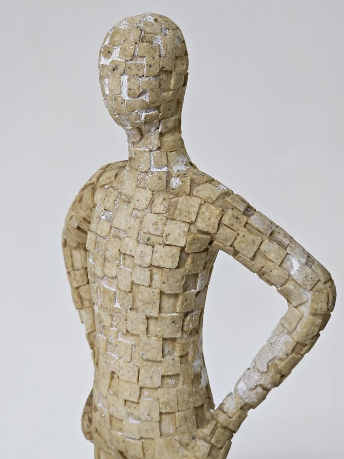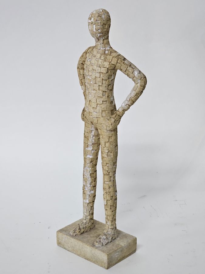 The figure stands in a neutral pose with its hands on its hips, on a square base.
