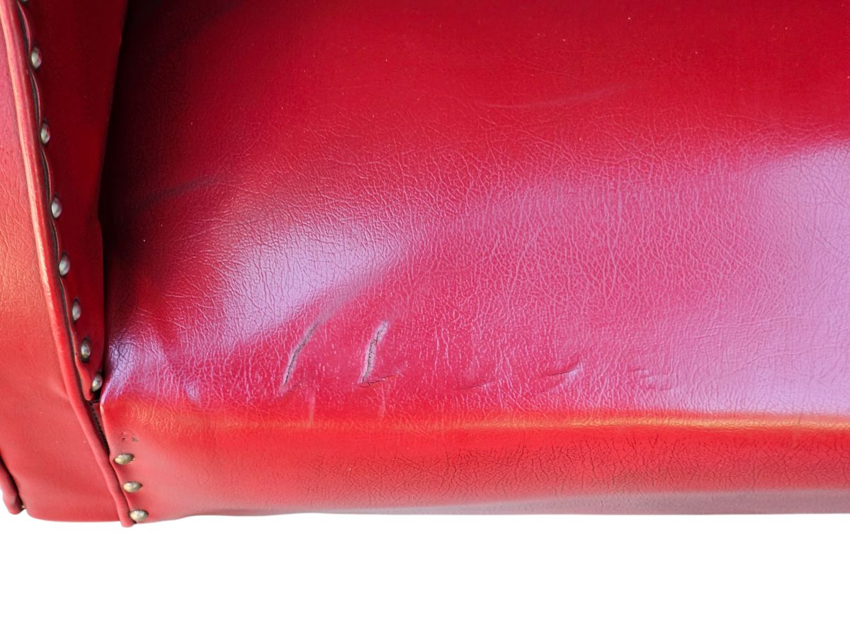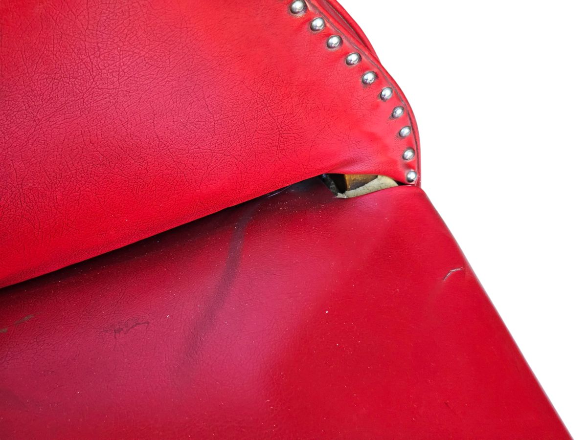 The chair is in good vintage but we suggest that the inner lip gets re-glued for more sturdy upholstery