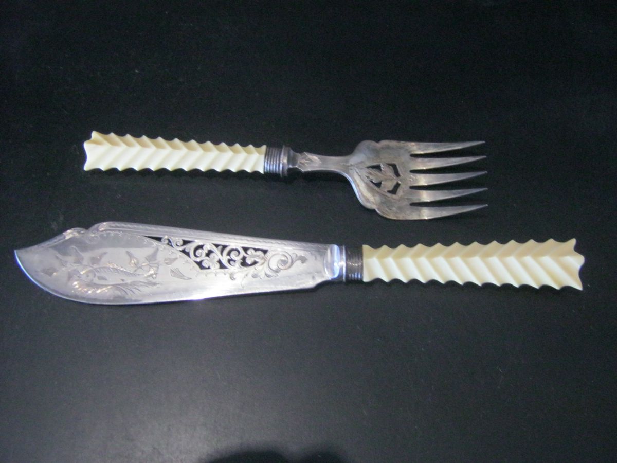 CASED SET OF FISH SERVING FORK AND SLICE, Mappin & Webb, Carved Bone Handles