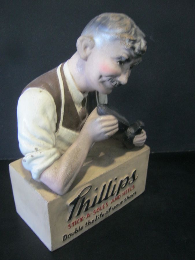 PHILLIPS STICK-A-SOLE COBLER'S SHOP ADVERTISING FIGURE, Mid Century, 30cm High, 20cm Wide, Crackle to Surface