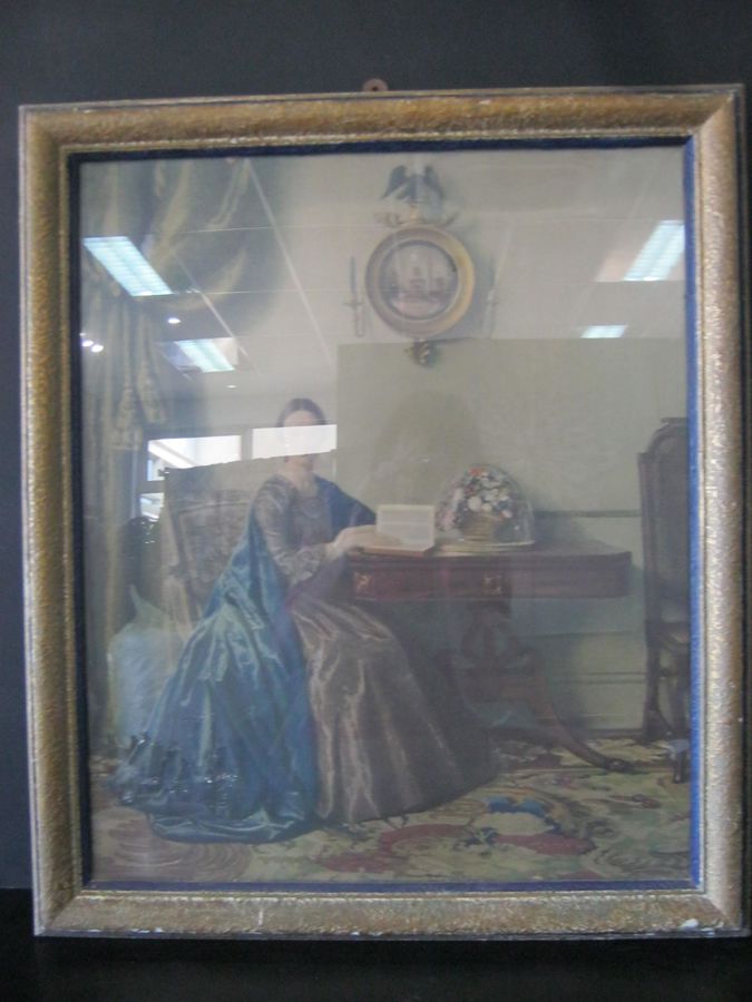 VINTAGE PRINT 'MAFALDA LADY IN BLUE' IN PERIOD FRAME, 59cm Wide by 70cm Long incl Frame