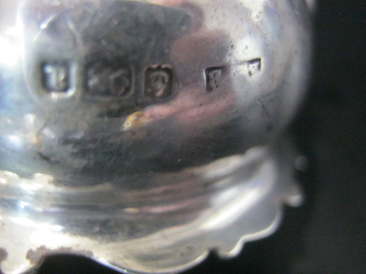 STERLING SILVER CRUET SET, 2 x Open Salts and Pepper Shaker, Birmingham 1900, 77g