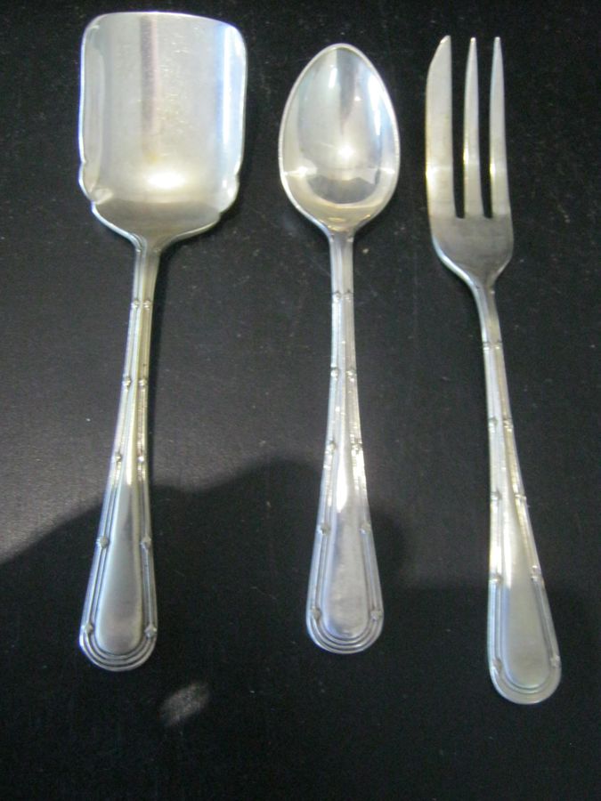 CASED SET OF SILVER PLATED CAKE FORKS AND TEASPOONS WITH SUGAR SPOON