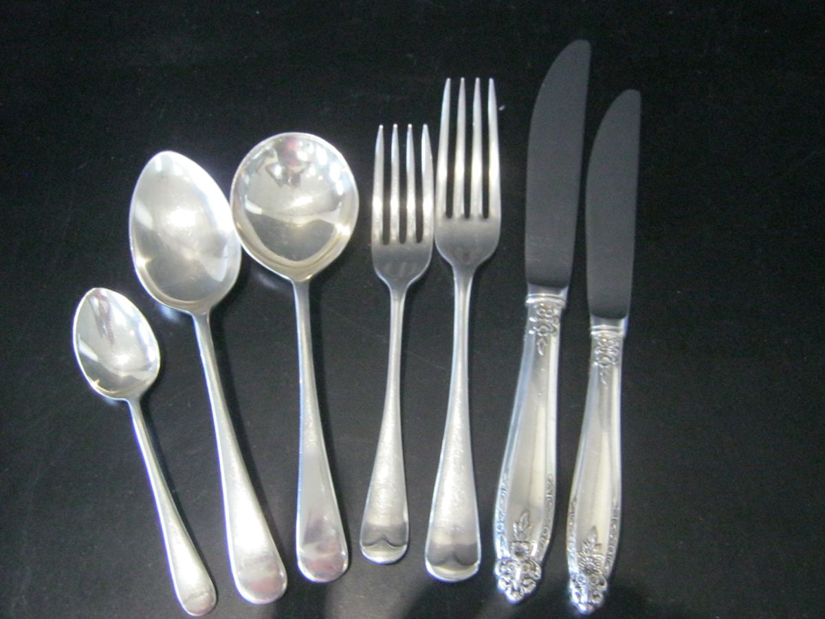 6 PLACE OLD ENGLISH SILVER PLATED CUTLERY SET, Dinner and Entre Knives, Dinner and Entre Forks, Soup Spoons, Desert Spoons, Teaspoons, Substituted Knives,